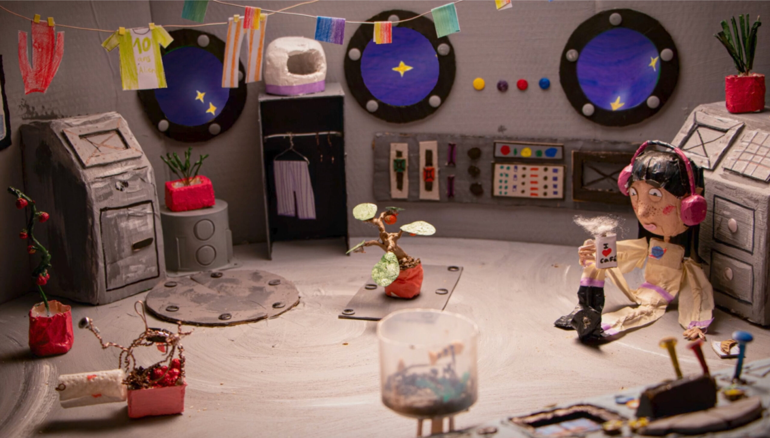 Pendant cinq jours, les jeunes se sont immergé·e·s dans l’univers du film d’animation et ont réalisé NEED SPACE (3 min 57 s) dans son ensemble : de l’écriture du scénario au design des personnages et des décors en passant par la création d’un storyboard et de l’enregistrement de musique et des bruitages. Au total, 15 adolescent·e·s avec des parcours de vie très divers, dont quatre mineurs non accompagnés établis au RADOS — foyer pour mineur·e·s non accompagné·e·s de Sion —, se sont rencontré·e·s et ont travaillé collectivement à la réalisation du court-métrage, présenté en avant-première publique le 22 septembre à la Fondation Fellini.