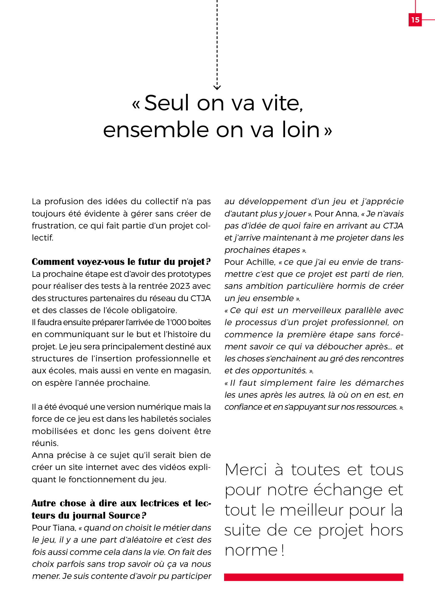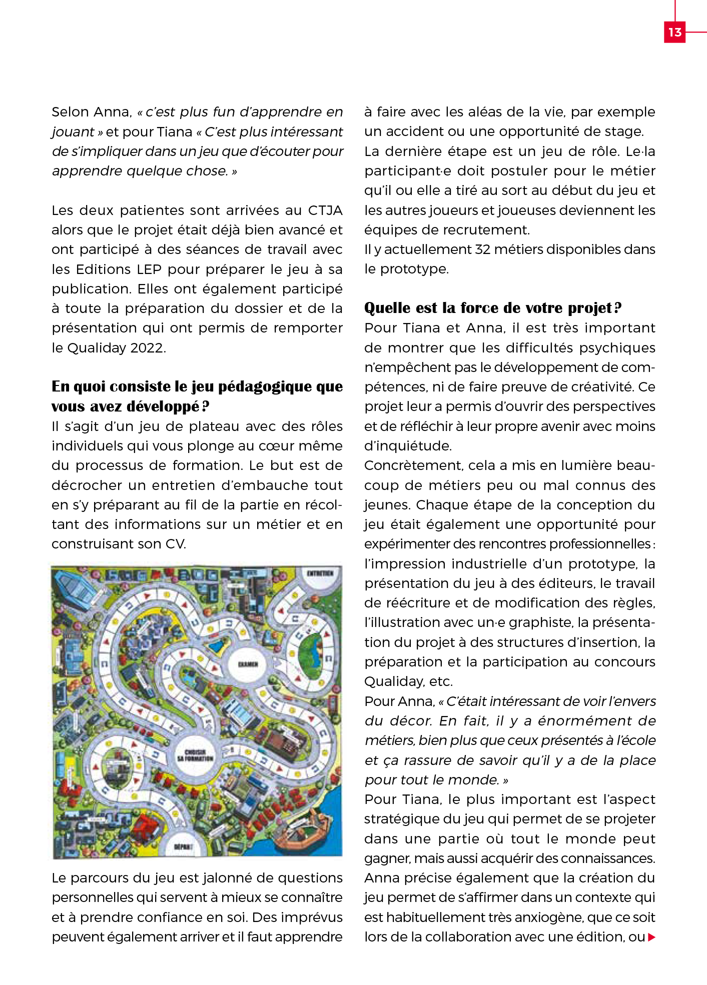 « La plus grande valeur du jeu, ce sont les questions « entretien », bravo pour ces questions » Bénéficiaire de 30 ans, Connexion Ressources (AI)